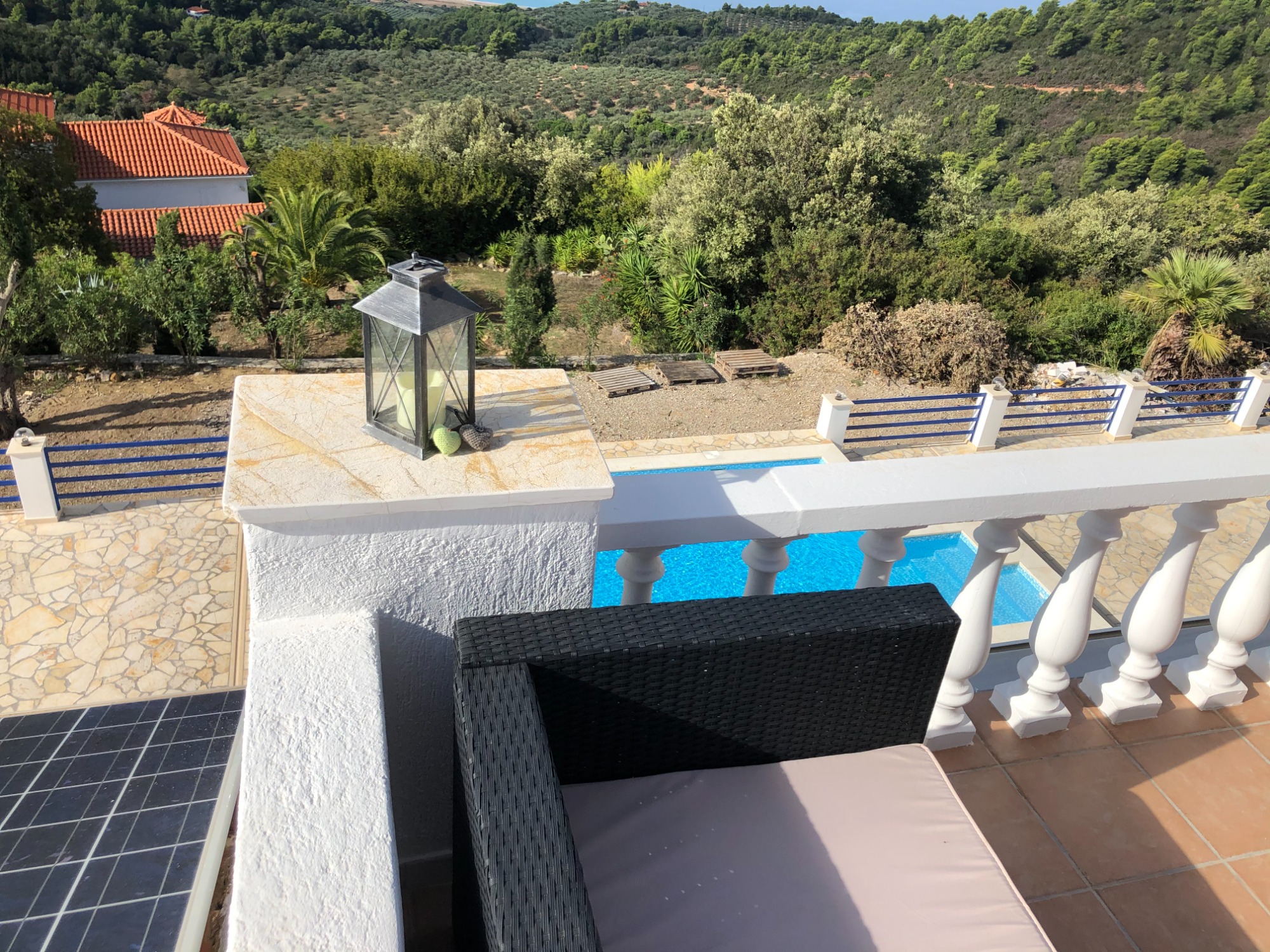 Von der Hauptwohnung aus führt eine Außentreppe bzw. ein kurzer Weg nach unten zum Pool.